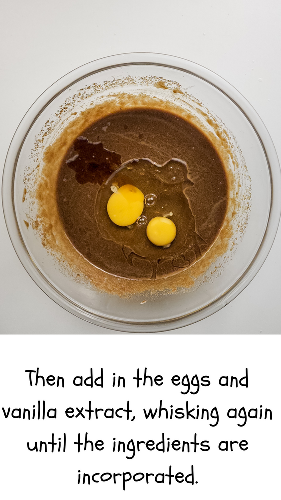 2. Then add in the eggs and vanilla extract, whisking again until the ingredients are incorporated.