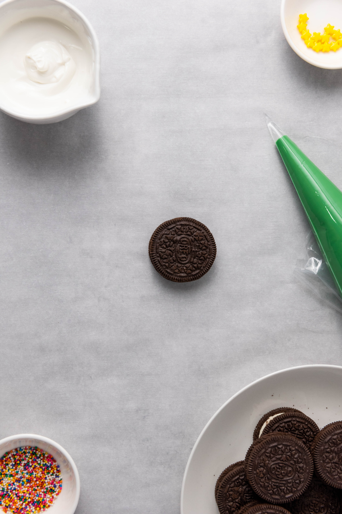 Once set, carefully remove the Christmas tree Oreos from the surface.