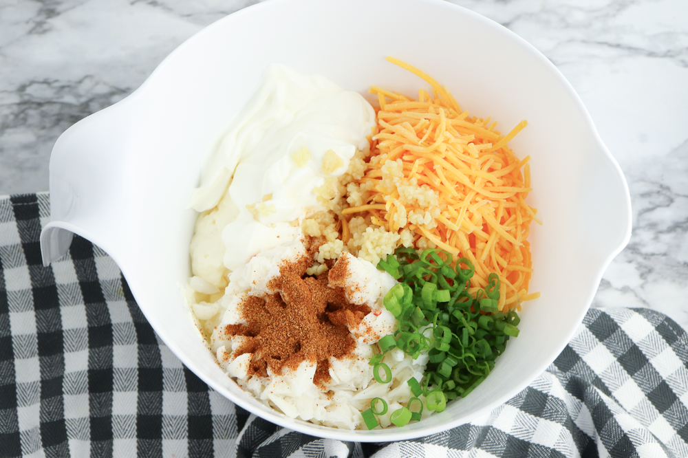 The seasonings used in this recipe are simple yet effective in enhancing the flavors of the other ingredients. Old Bay seasoning brings a classic flavor of the crab, seafood taste while minced garlic or garlic powder adds a hint of savory depth. The green onions provide freshness and color to the final dish.