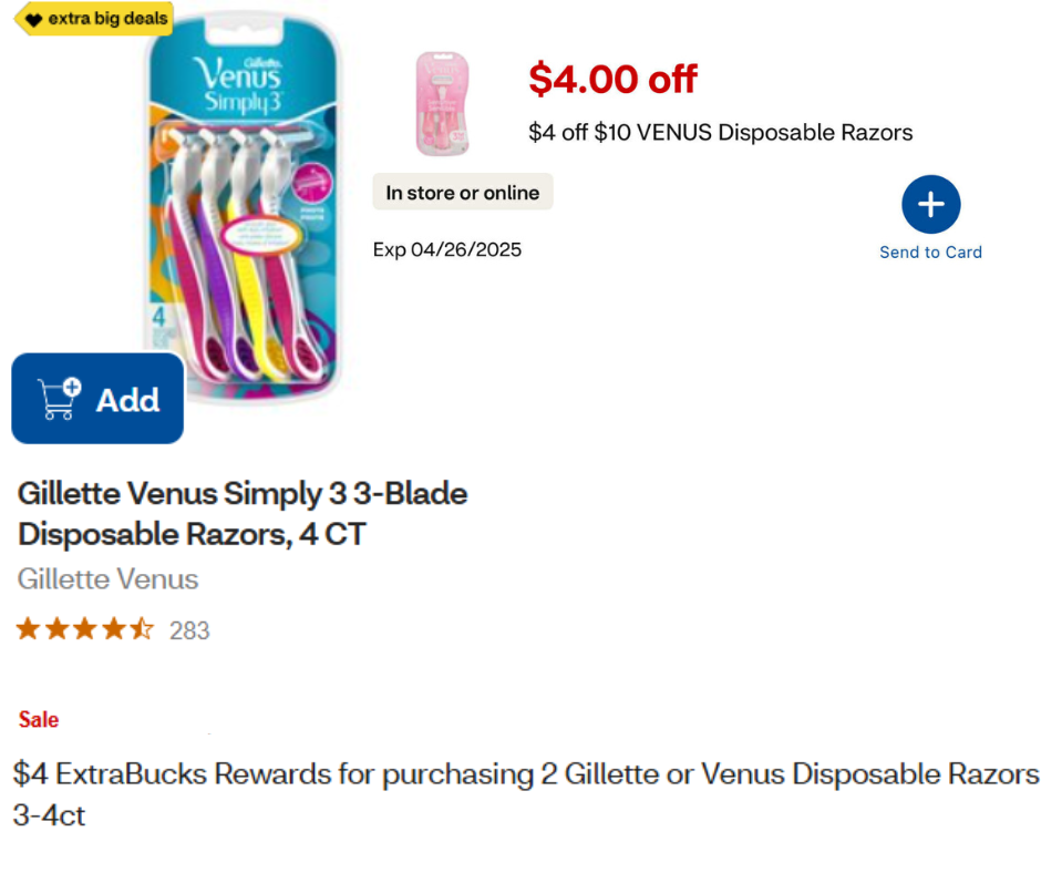 Always check your CVS app or ExtraCare account before shopping — personalized coupons like the $4/$10 Venus often vary week to week!