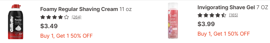 (2) Gillette Shaving Foam- $3.49/$1.74 (B1G1 50%)