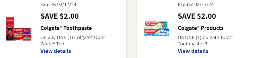 (1) Colgate Toothpaste, Toothbrush, or Mouthwash $4.00